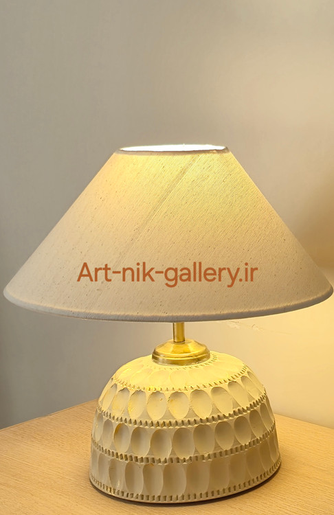 خرید آباژور رومیزی کندو سفالی کرم طلایی برند ارت نیک گالری کپی
